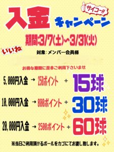 3/7~31は入金キャンペーン開催!!
